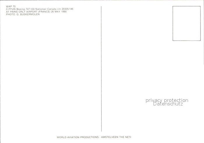 Flugzeuge Zivil Nationair Canada Boeing 747-124 C-FFUN c/n 20305/146 postalisch nicht gelaufen Erhaltung siehe scans