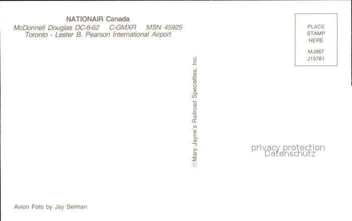 Flugzeuge Zivil Nationair Canada McDonnell Douglas DC-8-62 C-GMXR MSN 45925 postalisch nicht gelaufen Erhaltung siehe scans