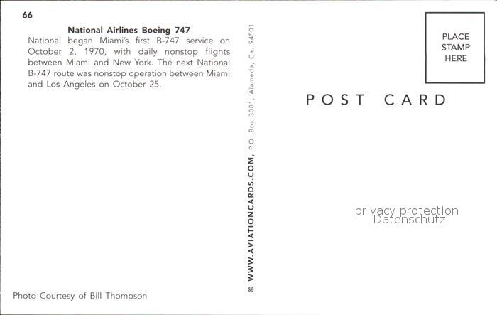 Flugzeuge Zivil National Airlines Boeing 747 postalisch nicht gelaufen Erhaltung siehe scans
