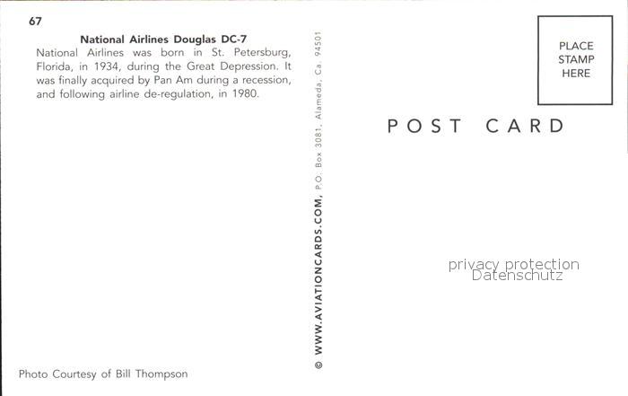 Flugzeuge Zivil National Airlines Douglas DC-7 N8207H postalisch nicht gelaufen Erhaltung siehe scans