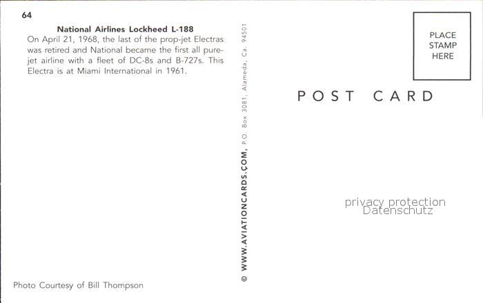 Flugzeuge Zivil National Airlines Lockheed L-188 postalisch nicht gelaufen