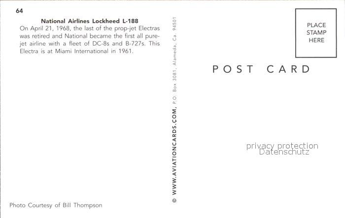 Flugzeuge Zivil National Airlines Lockheed L-188 N5002K postalisch nicht gelaufen Erhaltung siehe scans