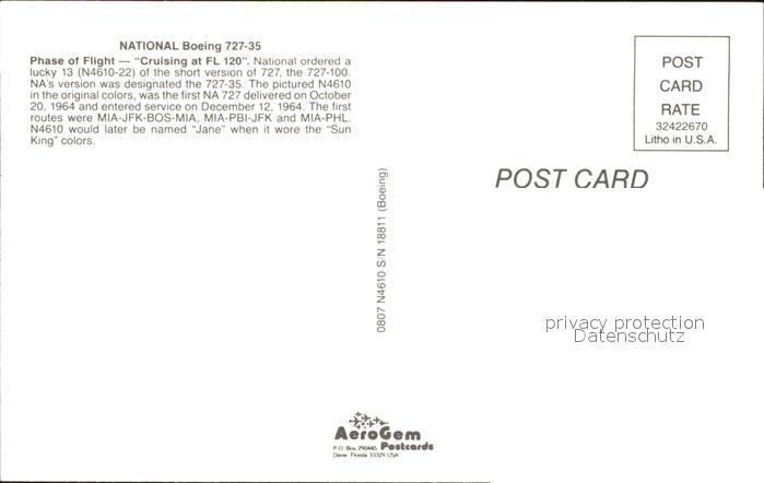 Flugzeuge Zivil National Boeing 727-35 N4610 s/n 18811 postalisch nicht gelaufen Erhaltung siehe scans