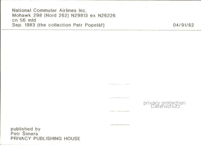 Flugzeuge Zivil National Commuter Airlines Inc. Mohawk 298 N29813 cn 56 postalisch nicht gelaufen Erhaltung siehe scans