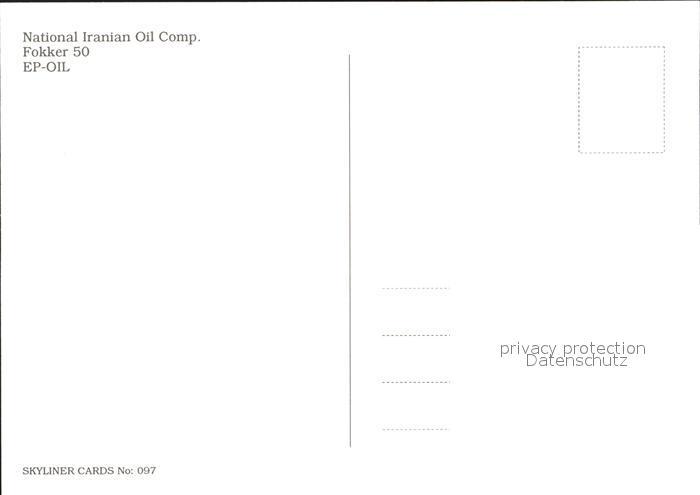 Flugzeuge Zivil National Iranian Oil Comp Fokker 50 EP-OIL postalisch nicht gelaufen Erhaltung siehe scans