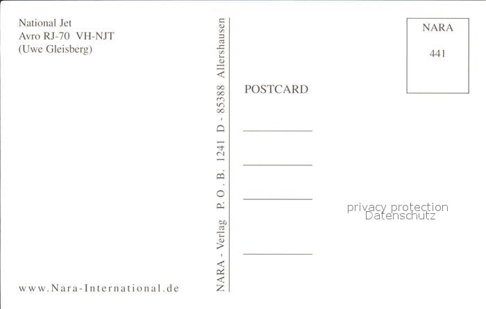 Flugzeuge Zivil National Jet Avro RJ-70 VH-NJT postalisch nicht gelaufen Erhaltung siehe scans