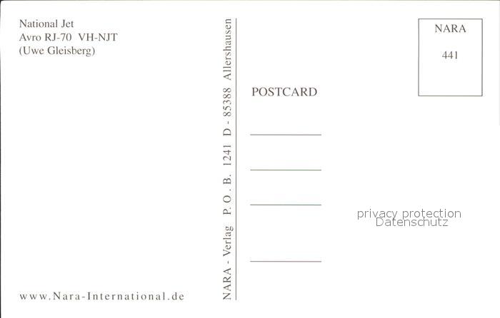 Flugzeuge Zivil National Jet Avro RJ-70 VH-NJT postalisch nicht gelaufen Erhaltung siehe scans