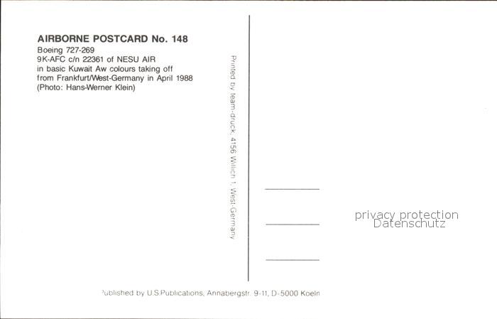 Flugzeuge Zivil Nesu Air Boeing 727-269 9K-AFC c/n 22361 postalisch nicht gelaufen Erhaltung siehe scans