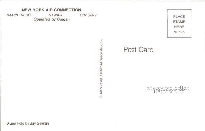 Flugzeuge Zivil New York Air Connection Beech 1900C N1900J C/N UB-3 postalisch nicht gelaufen Erhaltung siehe scans