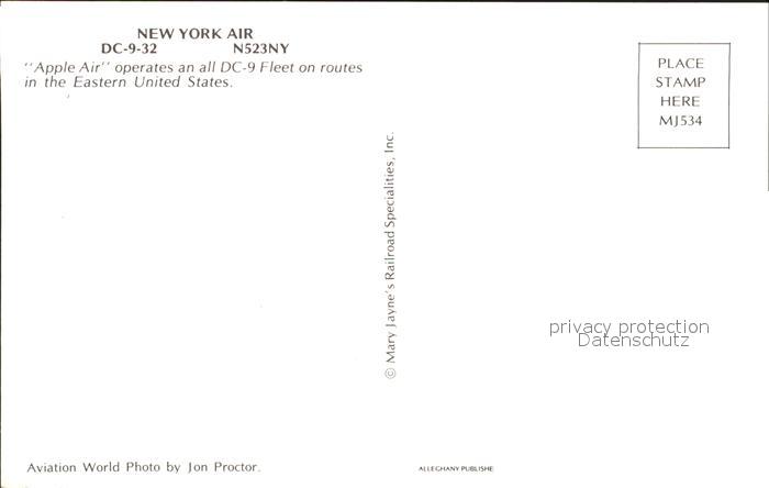 Flugzeuge Zivil New York Air DC-9-32 N523NY postalisch nicht gelaufen