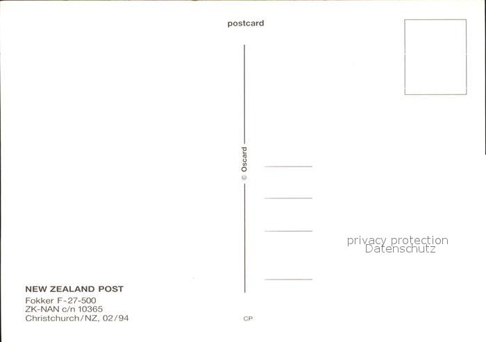 Flugzeuge Zivil New Zealand Post Fokker F-27-500 ZK-NAN c/n 10365 postalisch nicht gelaufen Erhaltung siehe scans
