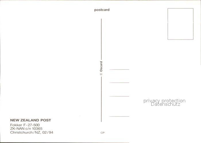 Flugzeuge Zivil New Zealand Post Fokker F-27-500 ZK-NAN c/n 10365 postalisch nicht gelaufen Erhaltung siehe scans