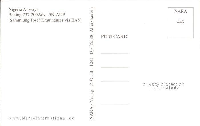 Flugzeuge Zivil Nigeria Airways Boeing 737-200Adv. 5N-AUB postalisch nicht gelaufen Erhaltung siehe scans