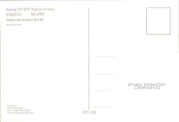 Flugzeuge Zivil Nigeria Airways Boeing 737-2F9 5N-ANW C/N 22771 postalisch nicht gelaufen Erhaltung siehe scans