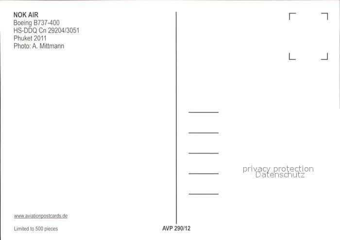 Flugzeuge Zivil Nok Air Boeing B737-400 HS-DDQ Cn29204/3051 postalisch nicht gelaufen