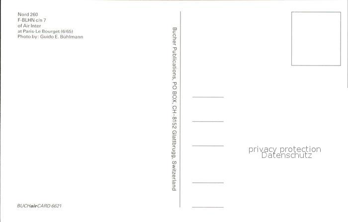 Flugzeuge Zivil Nord 260 F-BLHN c/n 7 Air Inter postalisch nicht gelaufen Erhaltung siehe scans