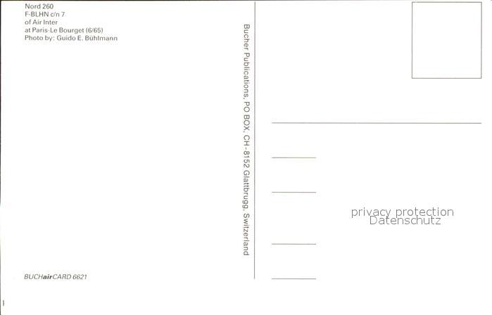 Flugzeuge Zivil Nord 260 F-BLHN c/n 7 Air Inter postalisch nicht gelaufen Erhaltung siehe scans