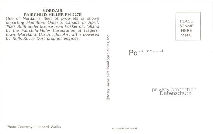 Flugzeuge Zivil Nordair Fairchild-Hiller FH-227E C-FNAJ postalisch nicht gelaufen Erhaltung siehe scans