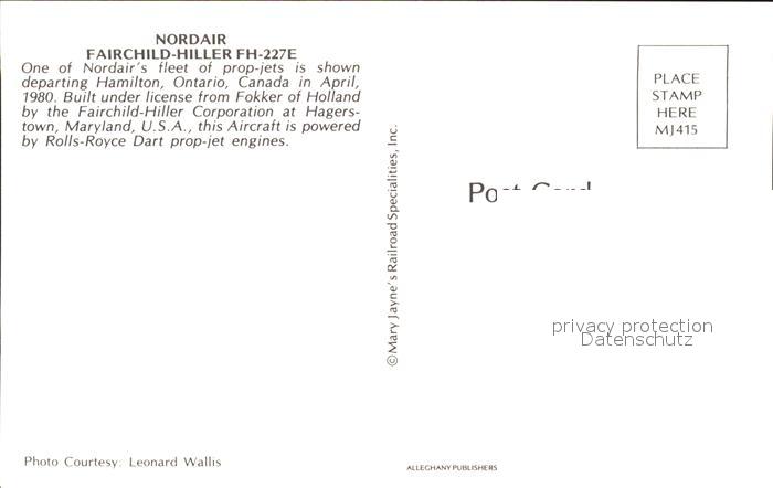 71809157 Flugzeuge Zivil Nordair Fairchild-Hiller FH -227E KatCode 22120000001300