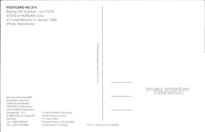 Flugzeuge Zivil Nordam Boeing 737-2L9 Adv. c/n 21279 N737Q postalisch nicht gelaufen Erhaltung siehe scans