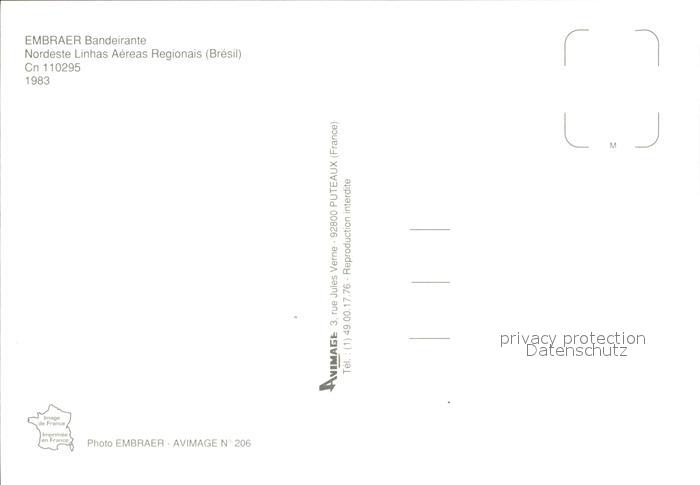 Flugzeuge Zivil Nordeste Linhas Aereas Regionais Embraer Bandeirante Cn 110295 postalisch nicht gelaufen Erhaltung siehe scans