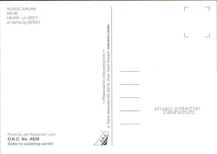 Flugzeuge Zivil Nordic Airlin MD-82 HB -INR c/n 49277 postalisch nicht gelaufen Erhaltung siehe scans