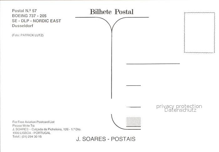 Flugzeuge zivil Nordic East Boeing 737-205 SE-DLP-Nordic East Duesseldorf postalisch nicht gelaufen Erhaltung siehe scans