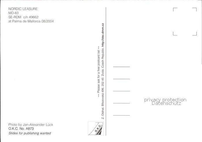Flugzeuge Zivil Nordic Leasure MD-83 SE-RDM c/n 49662 postalisch nicht gelaufen Erhaltung siehe scans