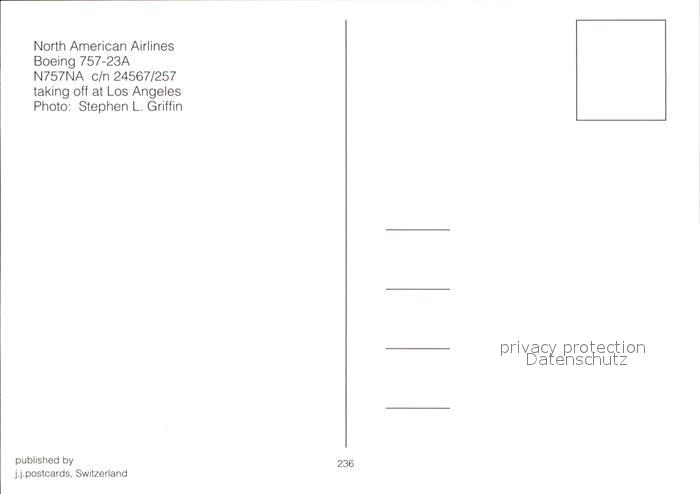 Flugzeuge Zivil North American Airlines Boeing 757-23A N757NA c/n 24567/257 postalisch nicht gelaufen Erhaltung siehe scans