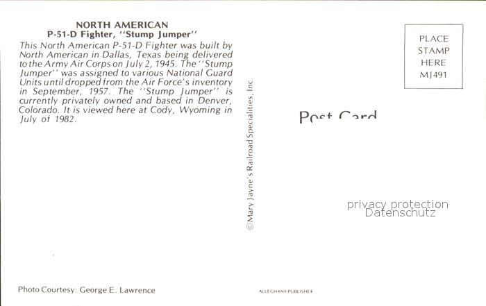 Flugzeuge Zivil North American P-51-D Fighter Stump Jumper postalisch nicht gelaufen Erhaltung siehe scans