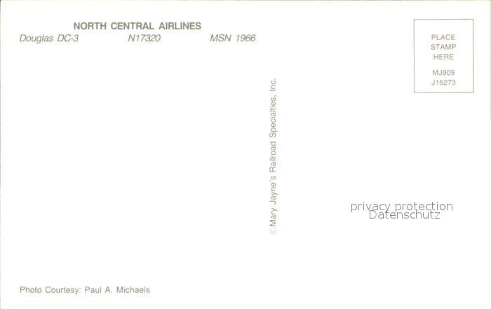 Flugzeuge Zivil North Central Airlines Douglas DC-3 N17320 MSN 1966 postalisch nicht gelaufen Erhaltung siehe scans