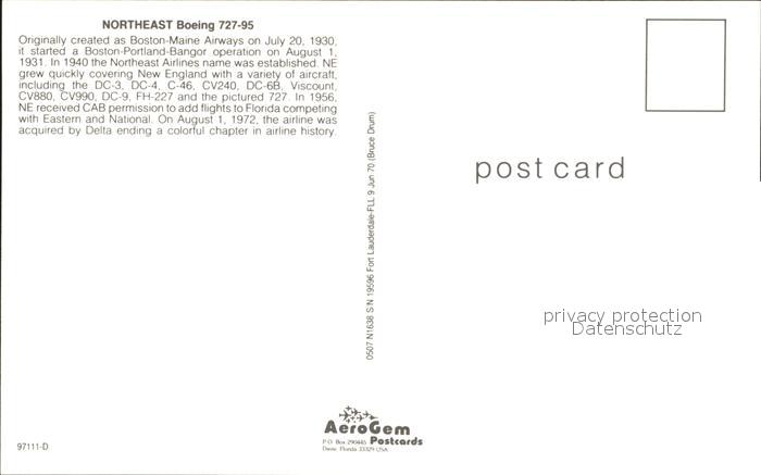Flugzeuge Zivil Northeast Boeing 727-95 postalisch nicht gelaufen Erhaltung siehe scans