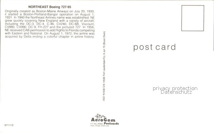 Flugzeuge Zivil Northeast Boeing 727-95 postalisch nicht gelaufen Erhaltung siehe scans