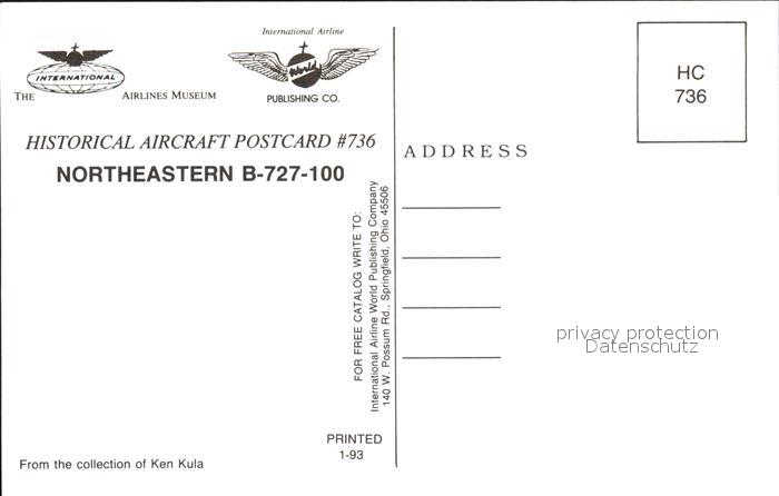 Flugzeuge Zivil Northeastern B-727-100 postalisch nicht gelaufen Erhaltung siehe scans
