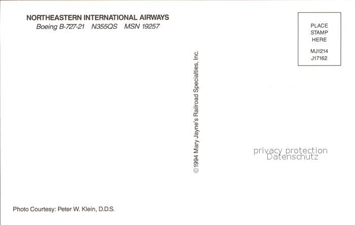 Flugzeuge Zivil Northeastern International Airways Boeing B-727-21 N355QS MSN 19257 postalisch nicht gelaufen Erhaltung siehe scans