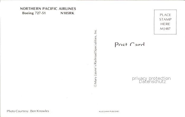 Flugzeuge Zivil Northern Pacific Airlines Boeing 727-51 N105RK postalisch nicht gelaufen Erhaltung siehe scans