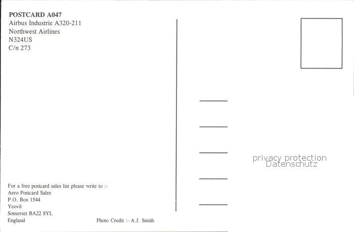 Flugzeuge Zivil Northwest Airlines Airbus Industrie A320-211 N324US C/n 273 postalisch nicht gelaufen Erhaltung siehe scans