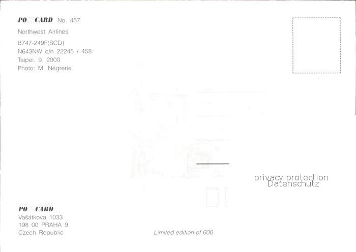 Flugzeuge Zivil Northwest Airlines B747-249F SCD N643NW c/n 22245/458 postalisch nicht gelaufen Erhaltung siehe scans