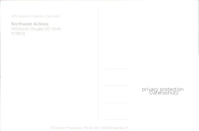Flugzeuge Zivil Northwest Airlines McDonnell Douglas DC-10-40 N156US postalisch nicht gelaufen Erhaltung siehe scans