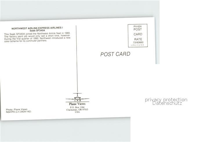 Flugzeuge Zivil Northwest Airlink Express Airlines I Saab SF340A postalisch nicht gelaufen Erhaltung siehe scans