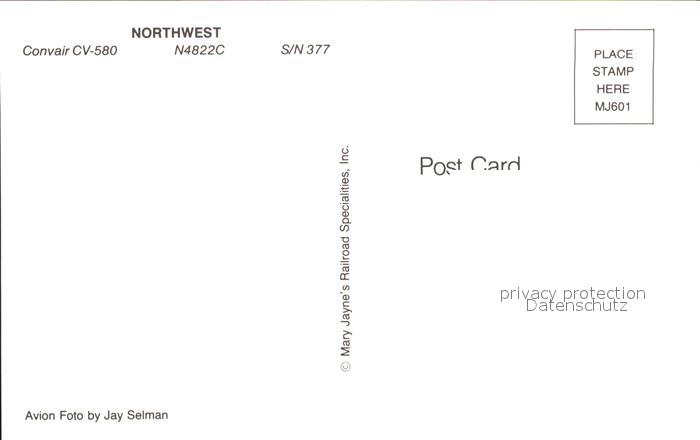 Flugzeuge Zivil Northwest Convair CV-580 N4822C s/n 377 postalisch nicht gelaufen Erhaltung siehe scans