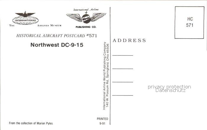 Flugzeuge Zivil Northwest DC-9-15 postalisch nicht gelaufen Erhaltung siehe scans