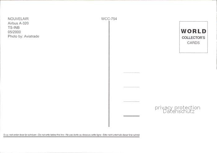 Flugzeuge Zivil Nouvelair Airbus A-320 TS-INB postalisch nicht gelaufen Erhaltung siehe scans