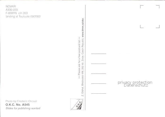 Flugzeuge Zivil Novair A330-223 F-WWYN c/n 353 postalisch nicht gelaufen Erhaltung siehe scans