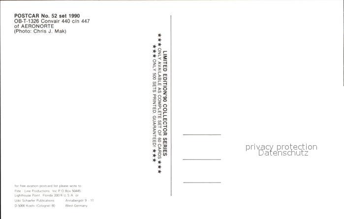 Flugzeuge Zivil OB-T-1326 Convair 440 c/n 447 Aeronorte postalisch nicht gelaufen Erhaltung siehe scans