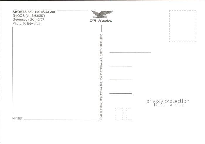 Flugzeuge Zivil OCS Shorts 330-100 SD3-30 G-IOCS cn SH3057 postalisch nicht gelaufen Erhaltung siehe scans