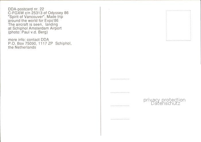 Flugzeuge Zivil Odyssey 86 C-FGXW c/n 25313 postalisch nicht gelaufen Erhaltung siehe scans