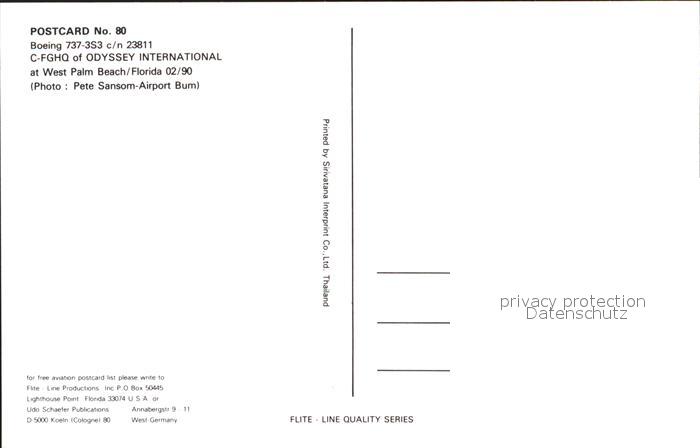 Flugzeuge Zivil Odyssey International Boeing 737-3S3 c/n 23811 C-FGHQ postalisch nicht gelaufen