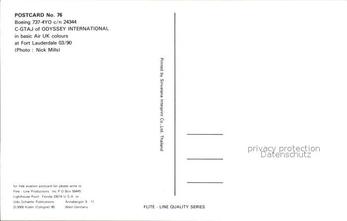 Flugzeuge Zivil Odyssey International Boeing 737-4Y0 c/n 24344 C-GTAJ postalisch nicht gelaufen Erhaltung siehe scans