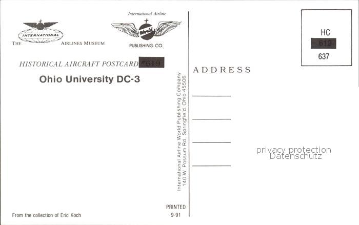 Flugzeuge Zivil Ohio University DC-3 N7AP postalisch nicht gelaufen Erhaltung siehe scans